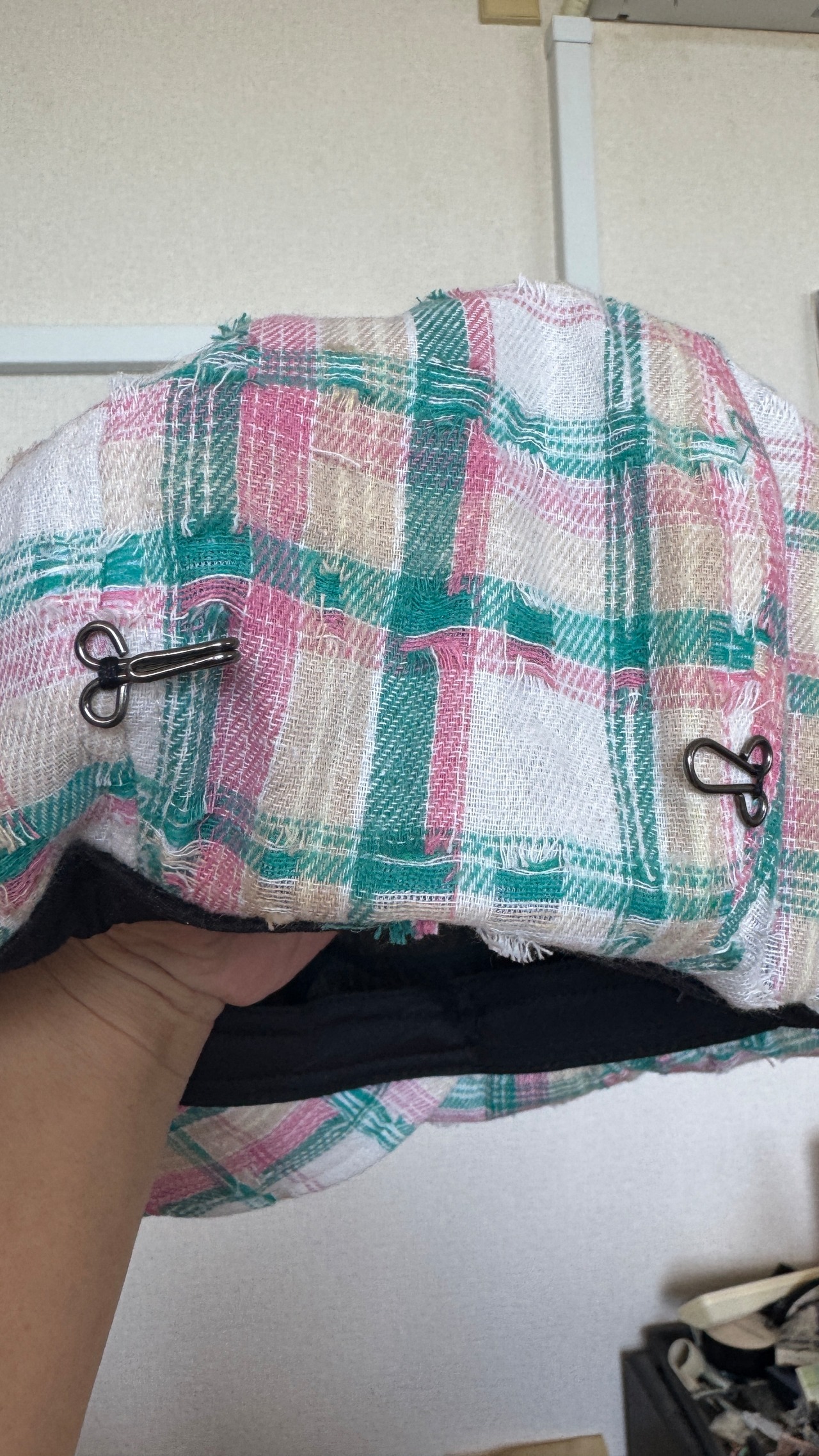 帽子の脇にもホックが付いていて、タックが寄せられるようになっていて形もとても可愛くセンスの良いキャスケット。