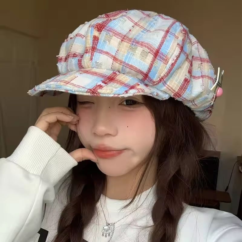 このキャスケットは、トレンドのチェック柄を使用し、ツバ部分には針金が入っているため、自由な形にアレンジ可能なデザインが特徴です。普段使いから特別な日まで幅広いシーンで活躍し、あなたのスタイルを引き立てます!