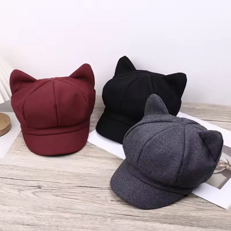 このキャスケットは、愛らしい猫耳モチーフが施されたデザインが魅力で、シンプルながらもファッションに遊び心をプラスします。カジュアルなスタイルはもちろん、個性的なコーディネートにもぴったりで、様々なシーンで気軽に楽しむことができます!